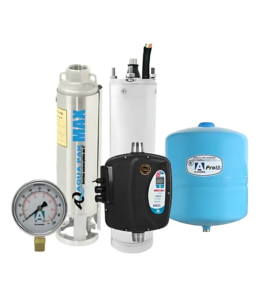 Sistema sumergible de presión constante MAXDRIVE con variador serie Water Drive marca HidroControl, motobomba MAX 2 HP y tanque de acero 18lts.