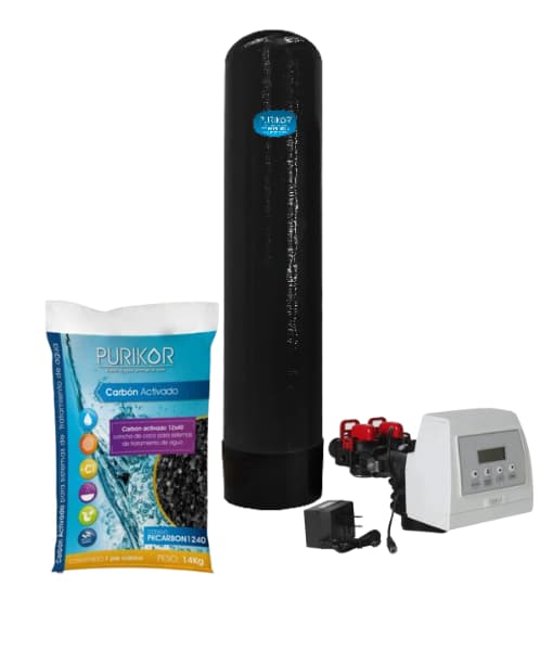 Crear una cuentaFiltro de carbón activado marca Purikor con válvula automática por demanda modelo PKVF27D-3-1465 y tanque de fibra de vidrio de 14″ x 65″ con capacidad de 3 ft3