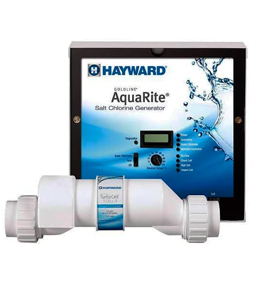Sistema generador de cloro a base de sal marca Hayward con celda turbo-cell para albercas de hasta 57,000 lts.