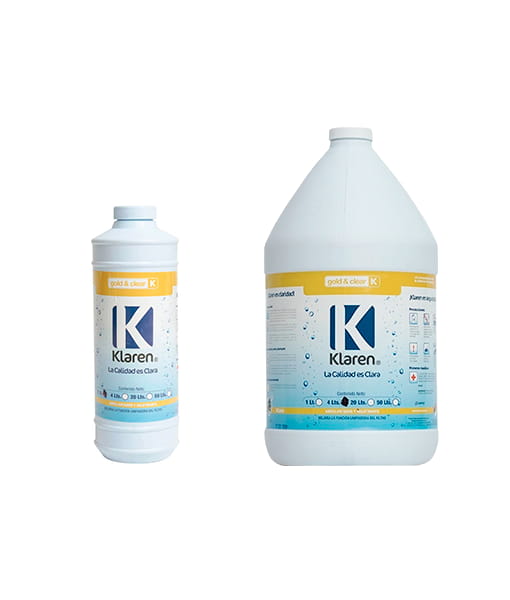Abrillantador Gold & Clear marca klaren, envases de 0.946, 4 y 20 lts.